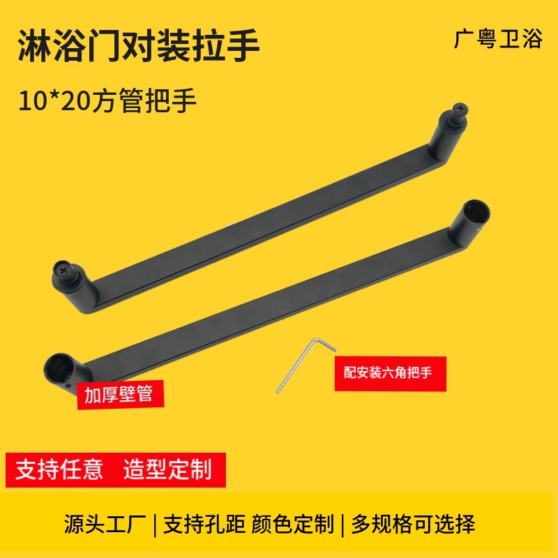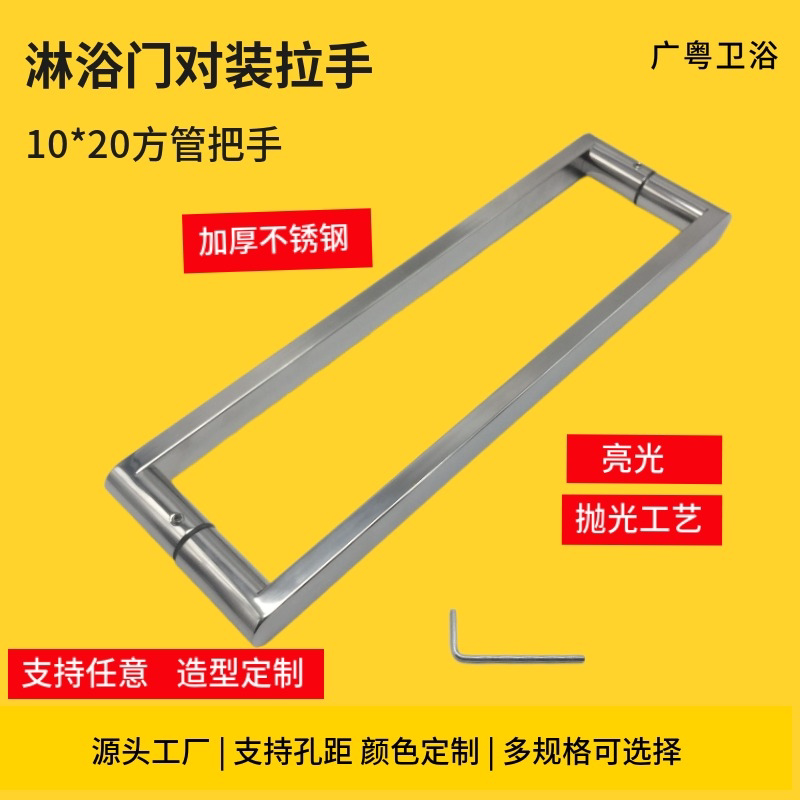 Shower door handle Ramen glass door handle square tube Stainless Steel Bathroom Makeup room armrest Double face hole 300m