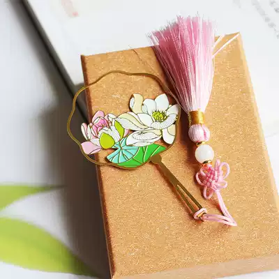 Water Furong metal Lotus bookmark Chinese style brass exquisite Lotus classical Zen tassel business bookmarks