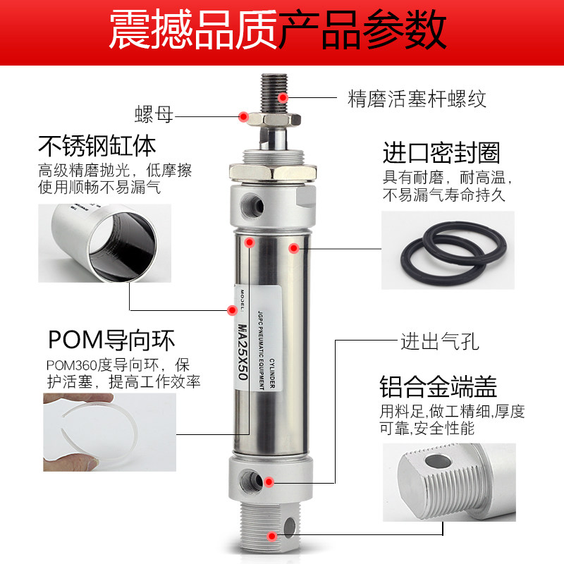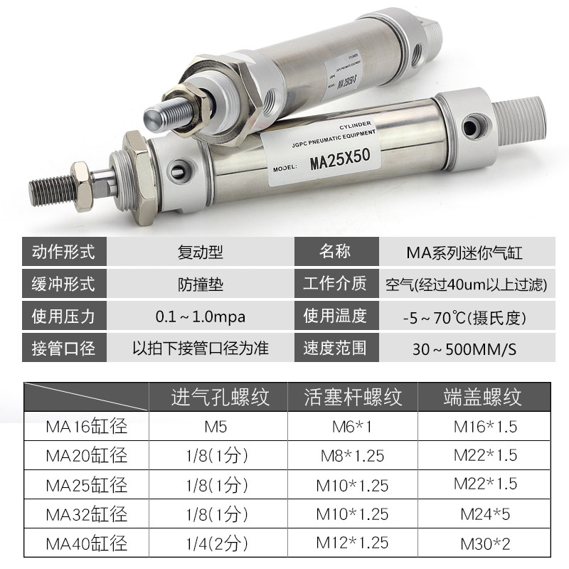 Small pneumatic stainless steel Mini cylinder MA16 20 25 32 32 40-100x200x25x50x75-S-CA-Taobao