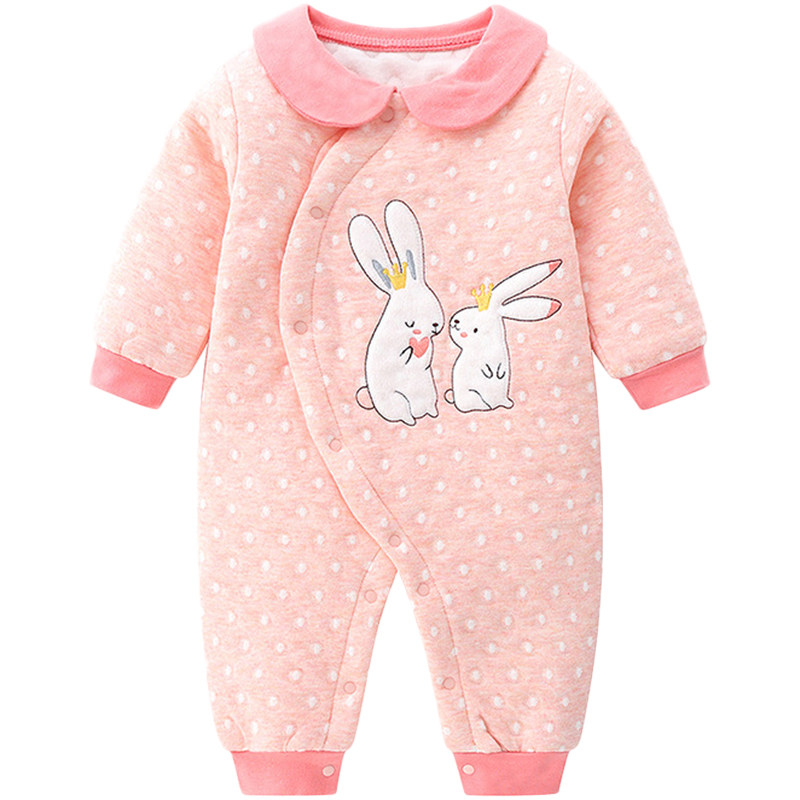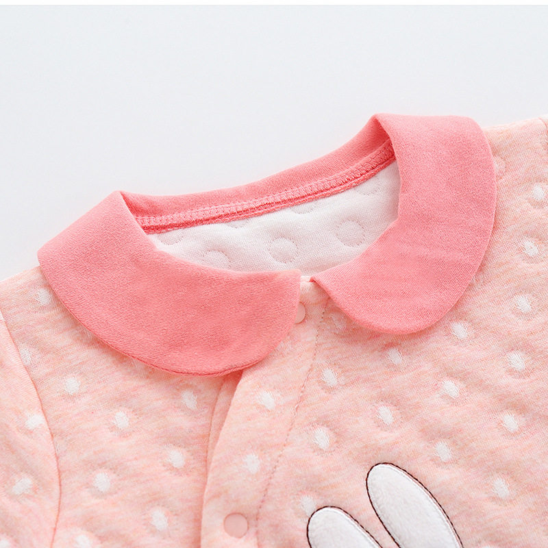Baby thin cotton jumpsuit autumn three-layer warm men's and women's baby plus cotton clothes go out romper newborn autumn clothes