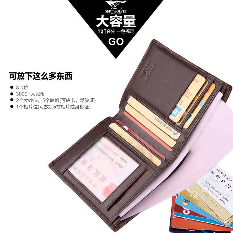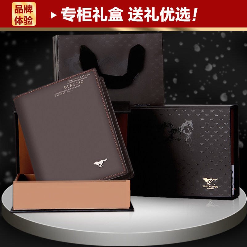 Septwolves men's wallet men's short leather leather wallet 2020 new youth student men's wallet tide brand