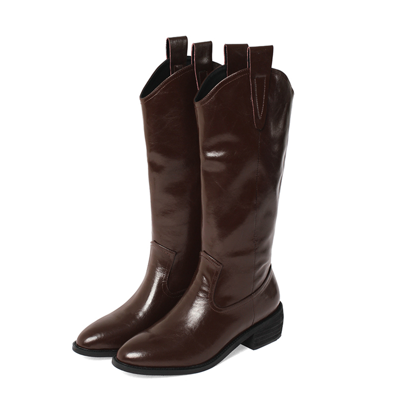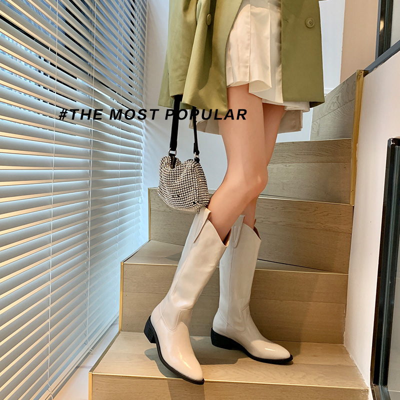 Yuan Circle Western Cowboy Boots White and American V word opening riding boots Martin boots retro coarse heel cylinder boot female