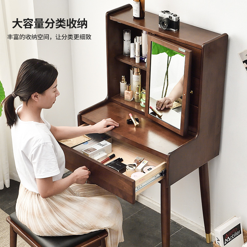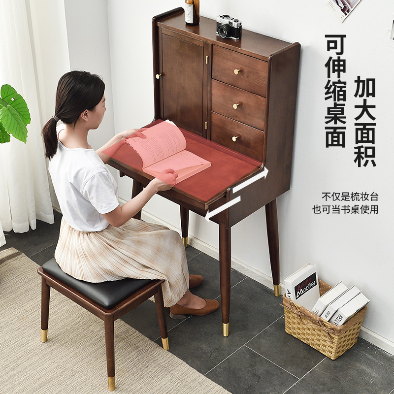 Nordic Solid Wood Makeup Bench Bedroom Modern Simplicity Johu Peach Wood Light Extravagant Furniture Large Capacity Multifunctional Make-up Table