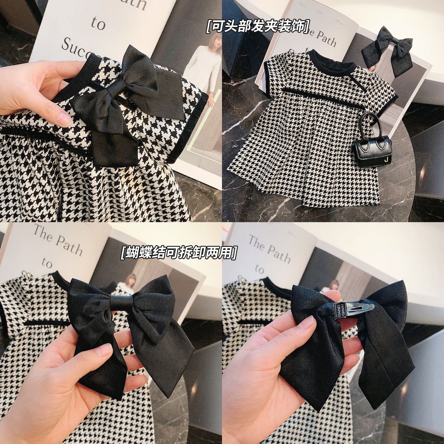 Two-piece hairband hairclip pin black vertical stripe pantyhose chords dress without bow classic black (bow) Joker black half-turtleneck sweater classic black coat cream apricot coat