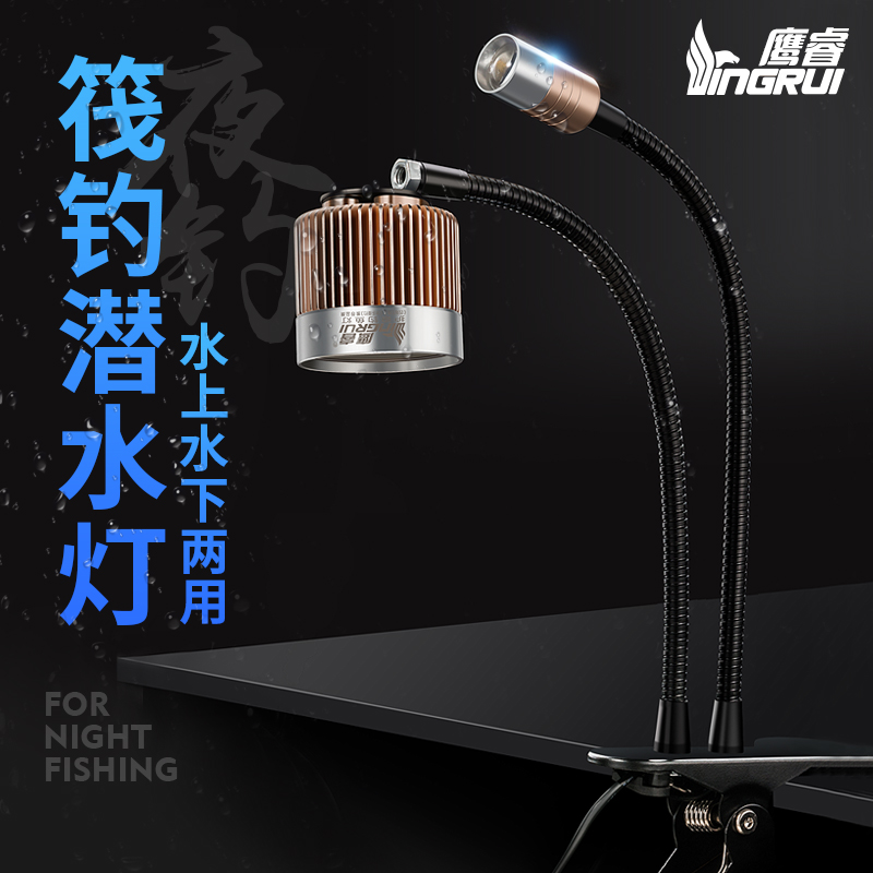 Eagle ray raft fishing lamp Warm yellow light poly fish lamp Underwater lure fish lamp Double-headed lamp pole light light cutting fishing table fishing night fishing
