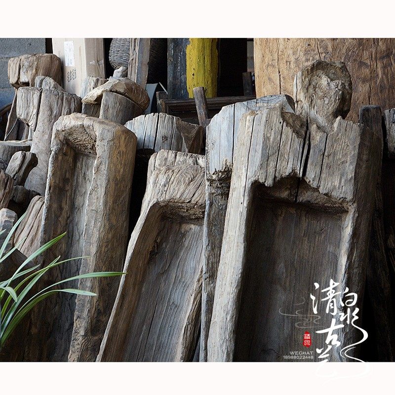 Yunnan anti-corrosion weathered wood flower pot outdoor rectangular log green plant flower pot large succulent flower trough old wooden trough