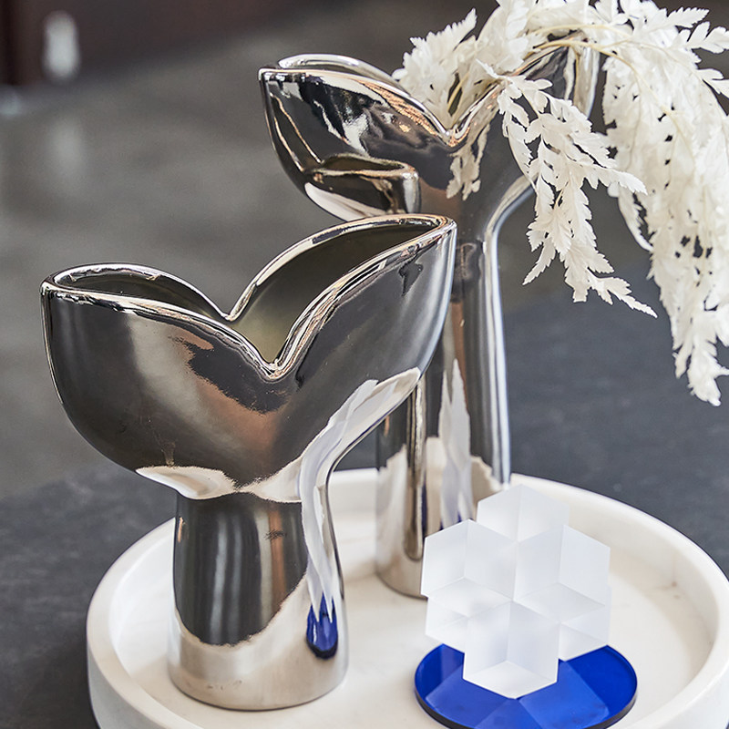 Modern Metropolitan Light Extravagant High Temperature Ceramic Flower Arrangement Pendulum simple wind Bedroom Bedroom-Like Board Xuan Guan Fish Tail Decoration Floral
