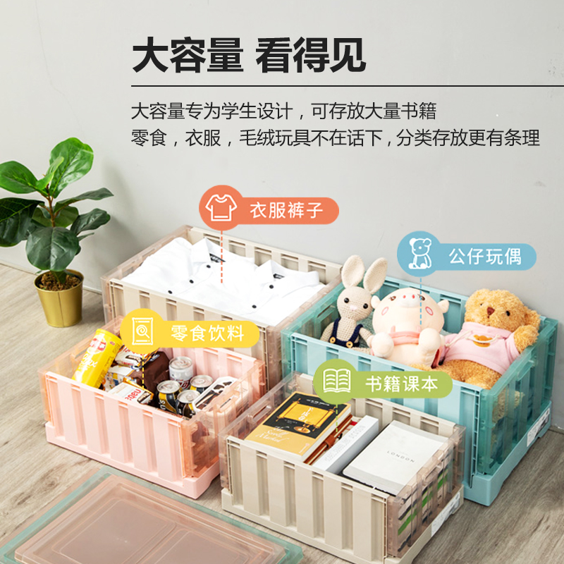 Foldable Bookbox plastic storage box snack storage box large capacity dormitory finishing box toy clothes storage box
