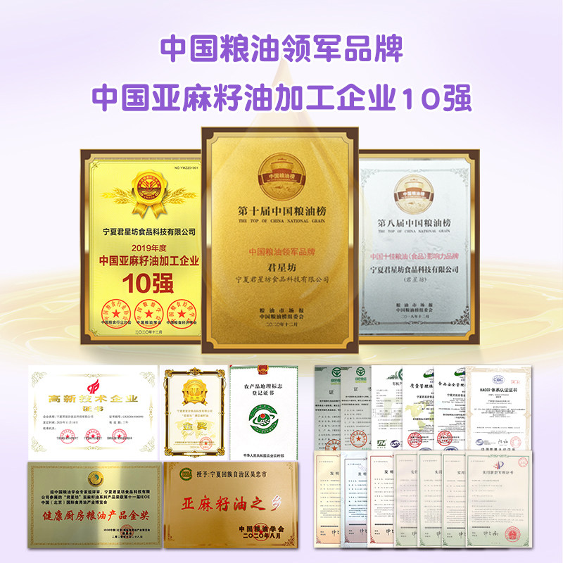 Junxing Ningxia Pure Flax Seed Oil Press First Class Hot Fried Oil Green Food Gift Box 750 ml2 bottle