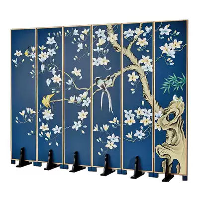 New Chinese hand-painted flowers and birds lacquer painting solid wood movable gold leaf screen European living room cubicle hotel decoration background