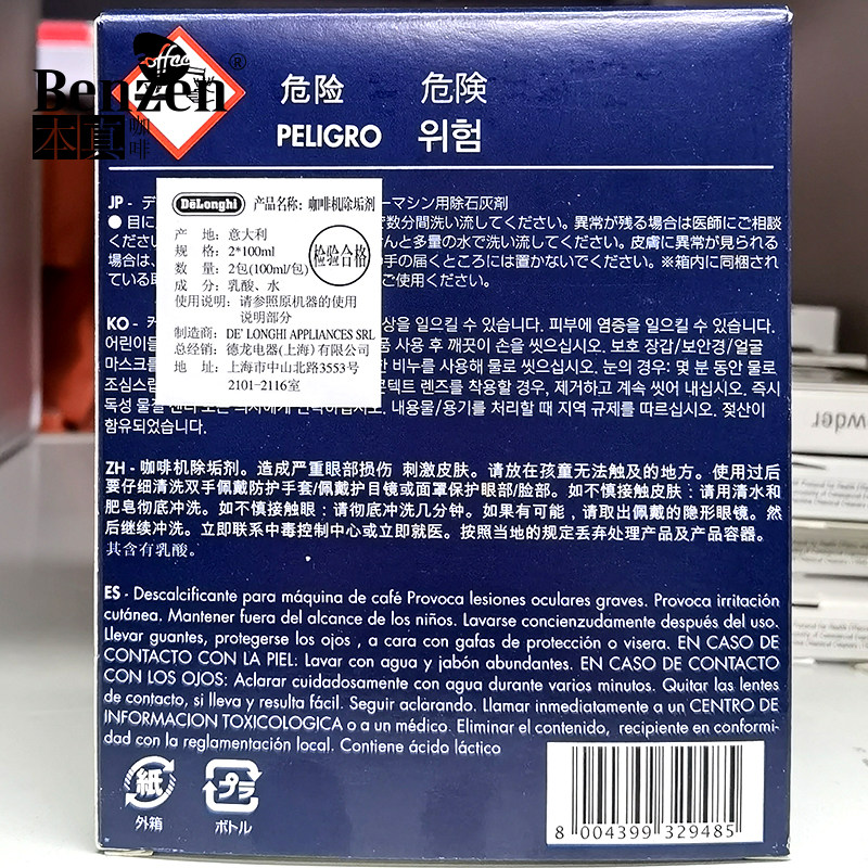 Delonghi Delong fully automatic coffee machine descaling detergent cleaning maintenance liquid Italy Imports 100ml * 2-Taobao