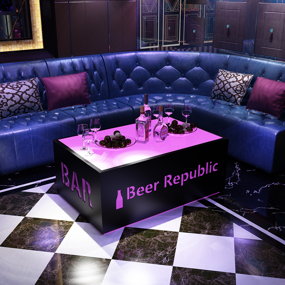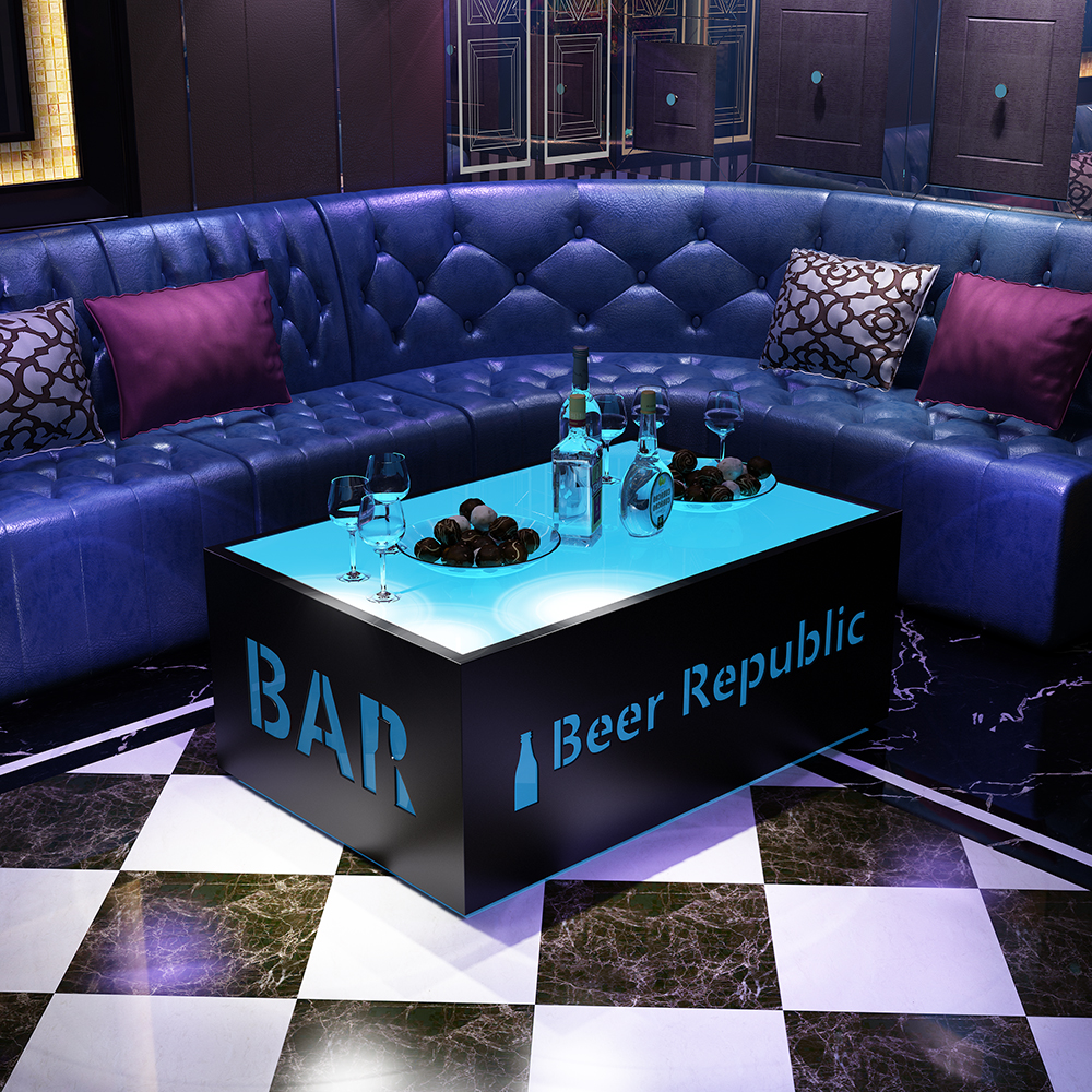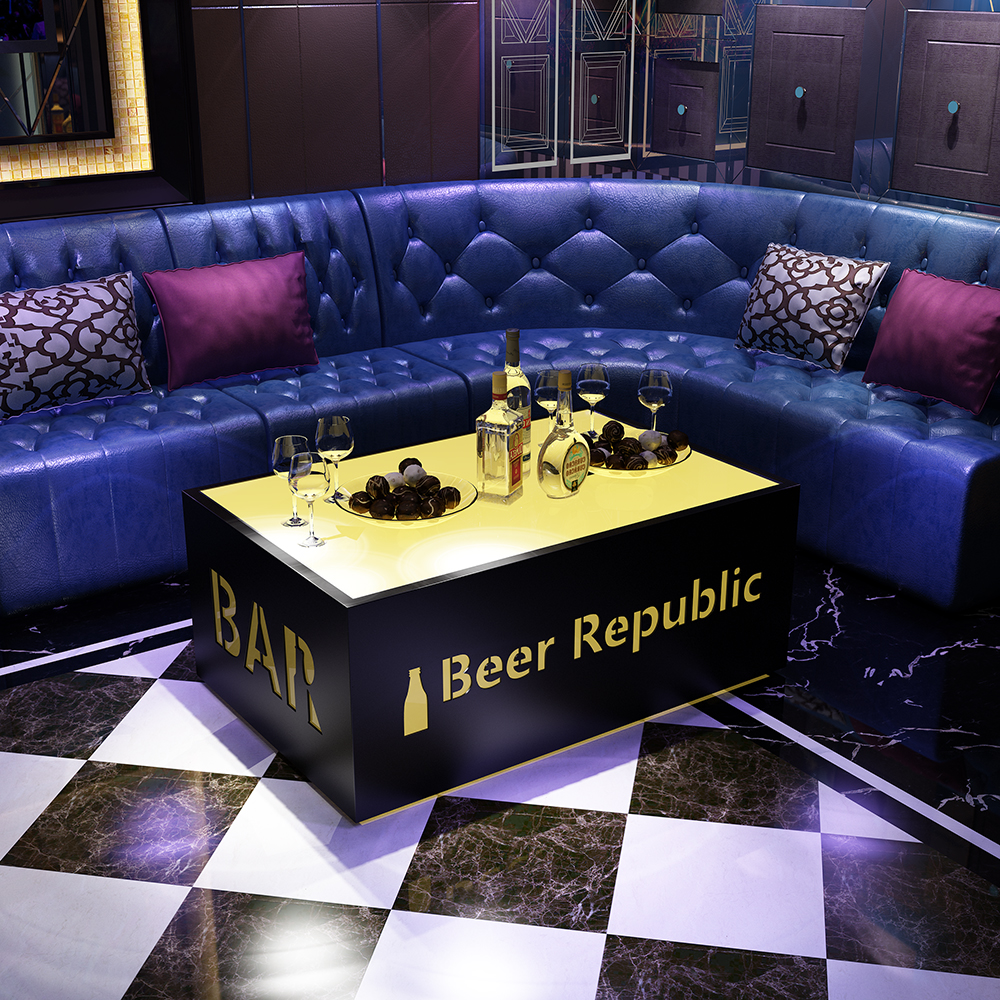 2021 new KTV luminous coffee table marble bar table tempered glass European stainless steel table customization