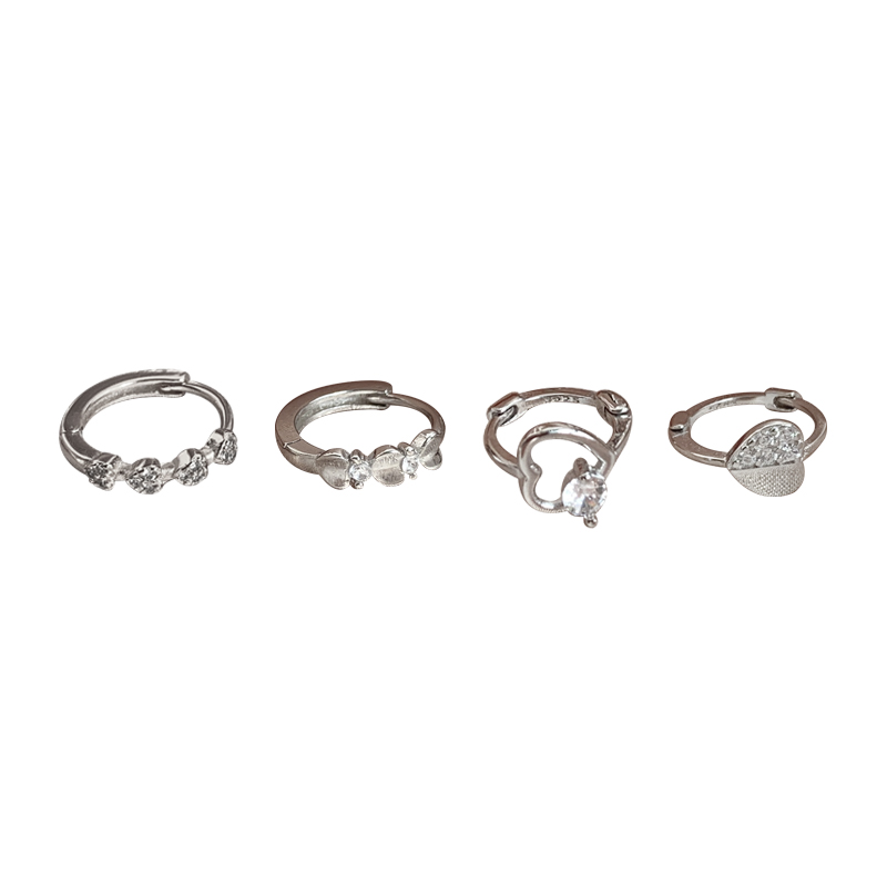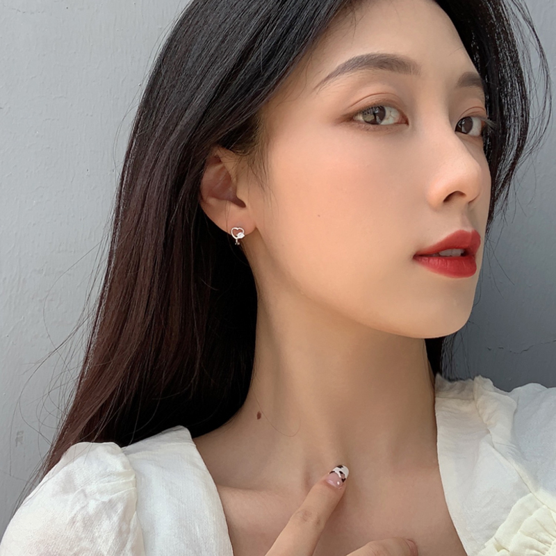 For evening flash drilling of love and delicate small ear button silver ear ring female Korean temperament net red 100 hitch a sweet and beautiful ear decoration