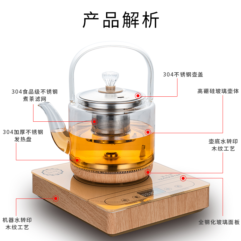 Black Crystal Furnace Cooking Tea Set for small Kung fu tea with glass teapot tea fully automatic Sheung Shui Home Boiling Water Pot