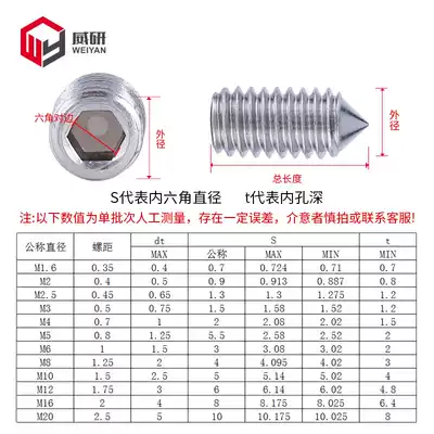 304 stainless steel tip set screw M3M4M5M6M8M10 cone top wire tip machine meter hexagon head without head
