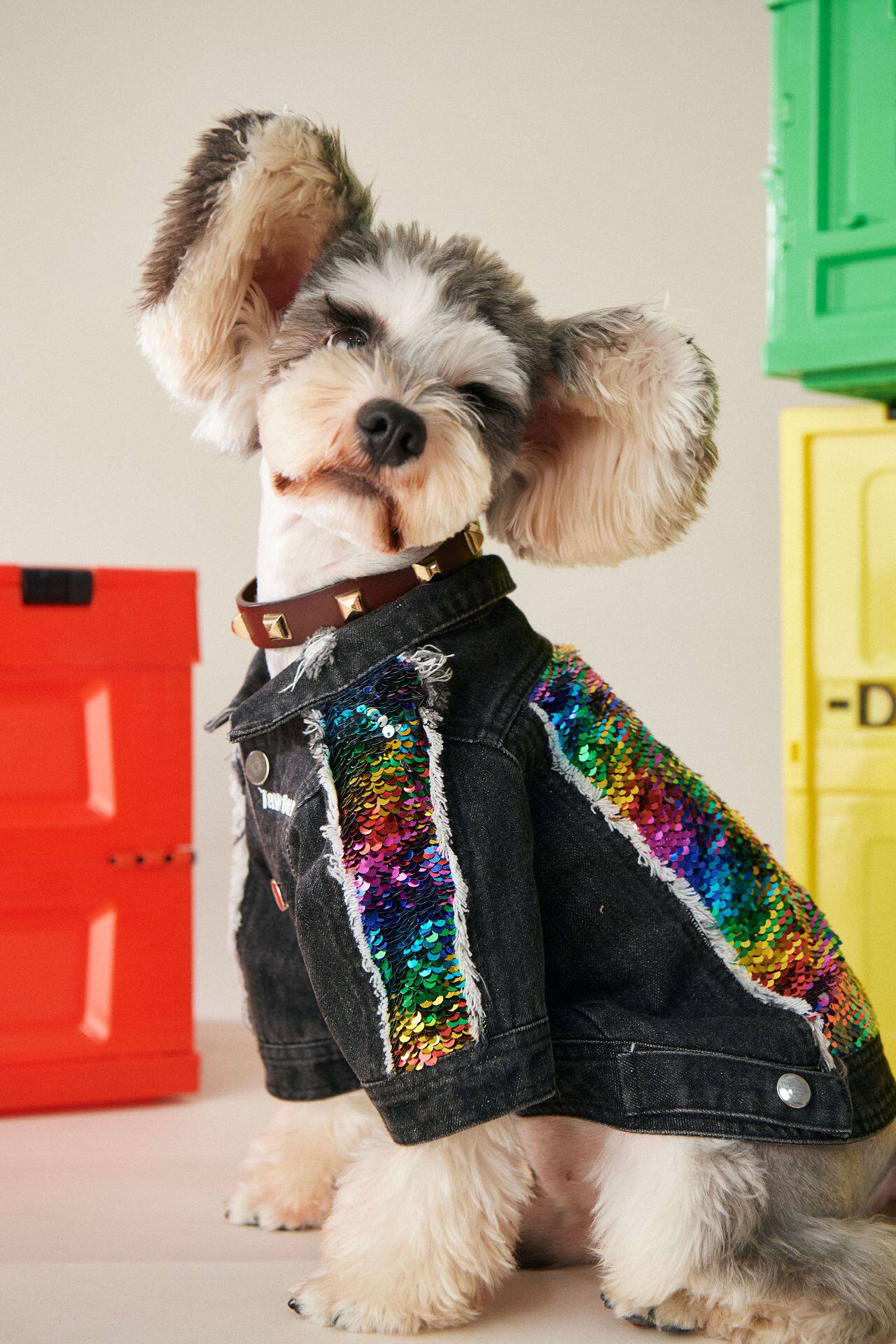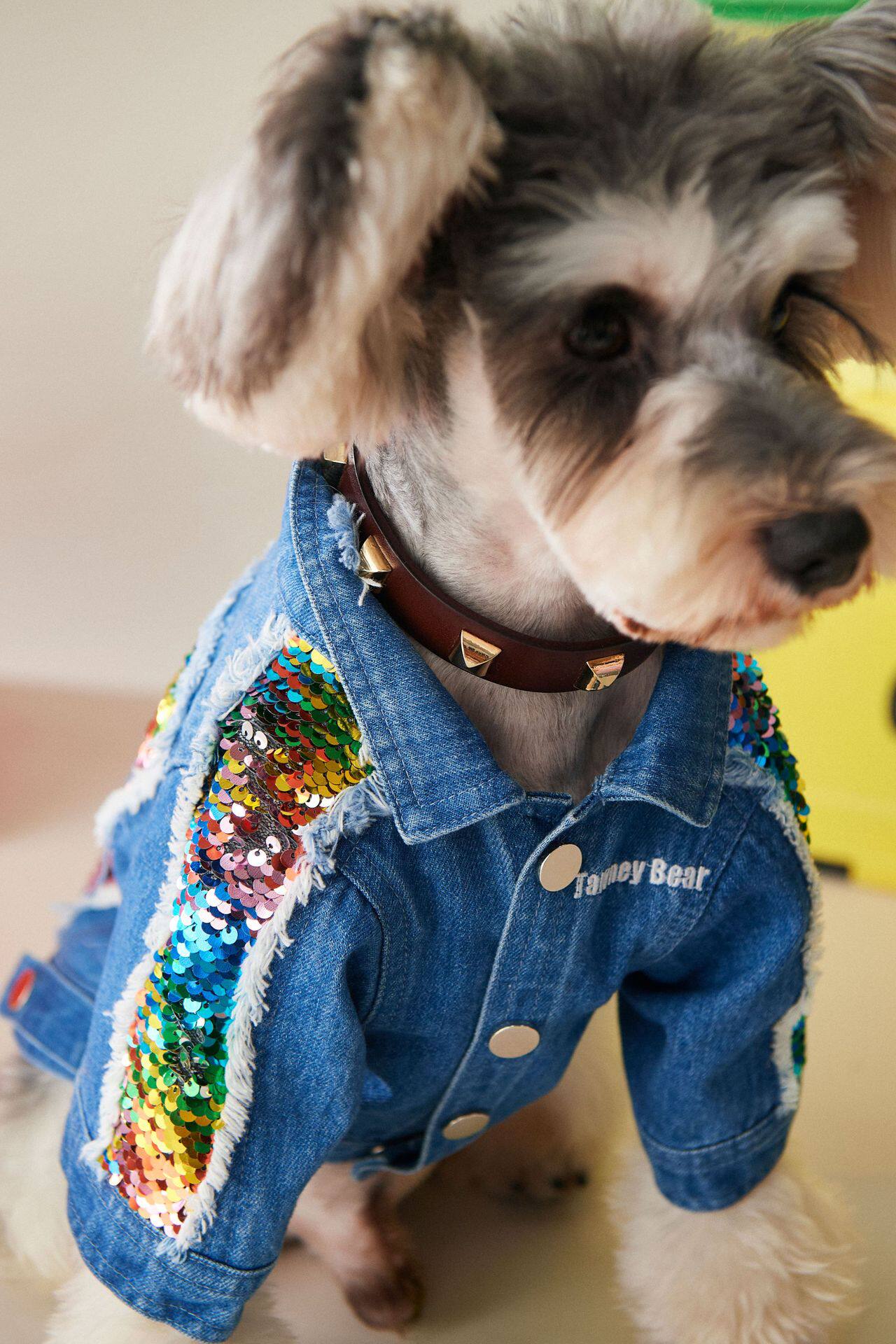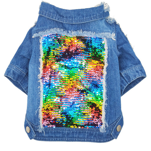 Sequins Pet Denim Jacket Color Schnauzer Teddy French Dog Clothes Small and Medium Dogs Autumn and Winter