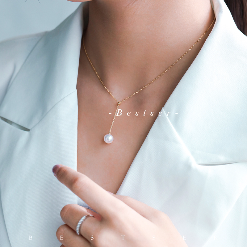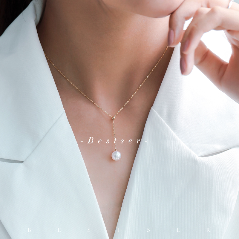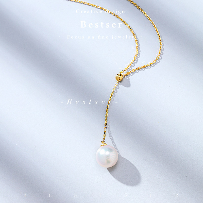 Bi-color Bestser (elf) 18K gold necklace natural seawater pearl pendant women's Japanese Akoya