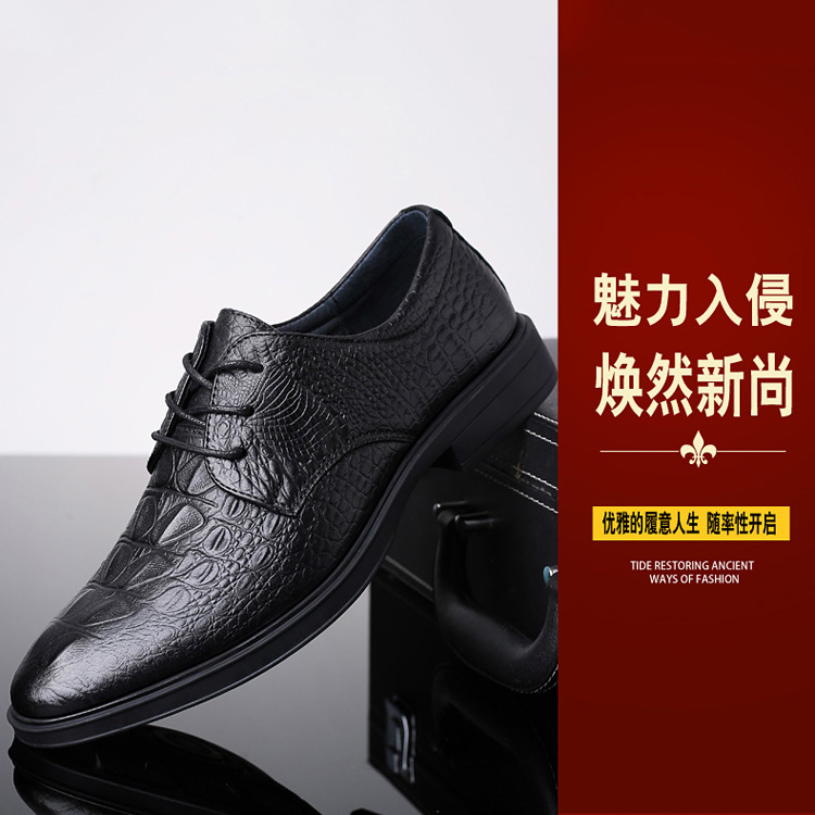 Leather shoes men's leather bull invisible heightening men's crocodile pattern pointed toe business casual shoes Di Luo shark men's shoes Doffer