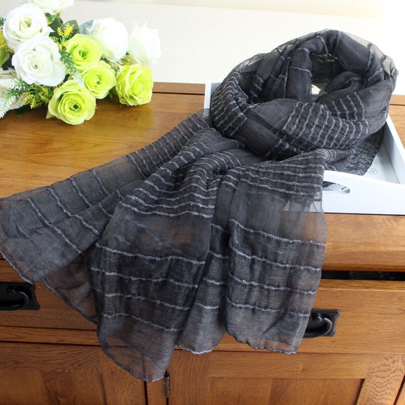Light Field Strip Cotton Scarf Scarf Female Spring Fall Winter Thin Screen Screen Shelf Black and Gray