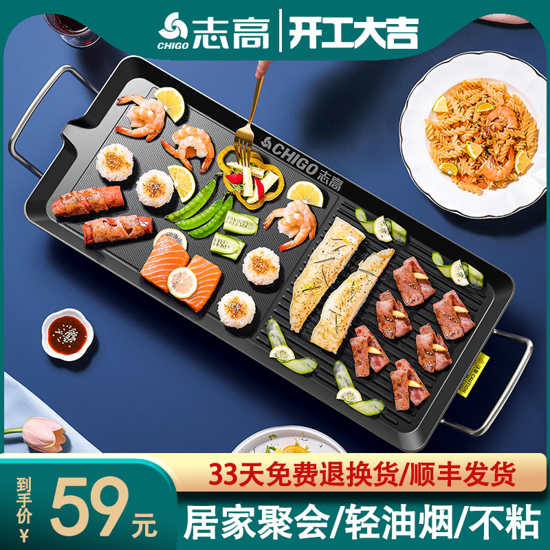 Zhigao electric oven Household smoke-free barbecue electromechanical baking plate Shabu-shabu Korean multi-functional hot pot all-in-one pot grilled fish