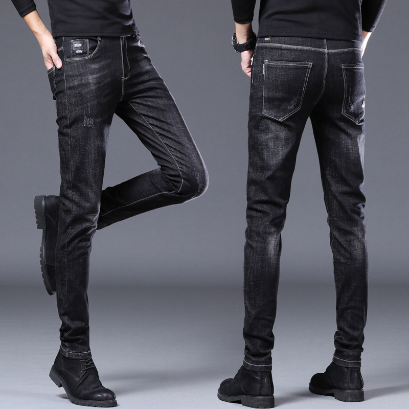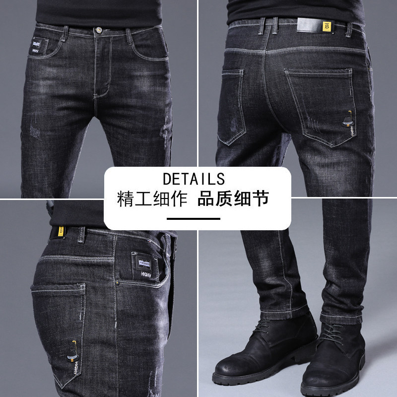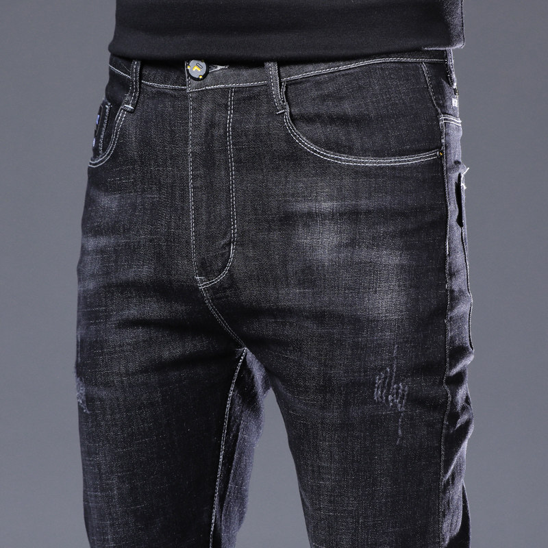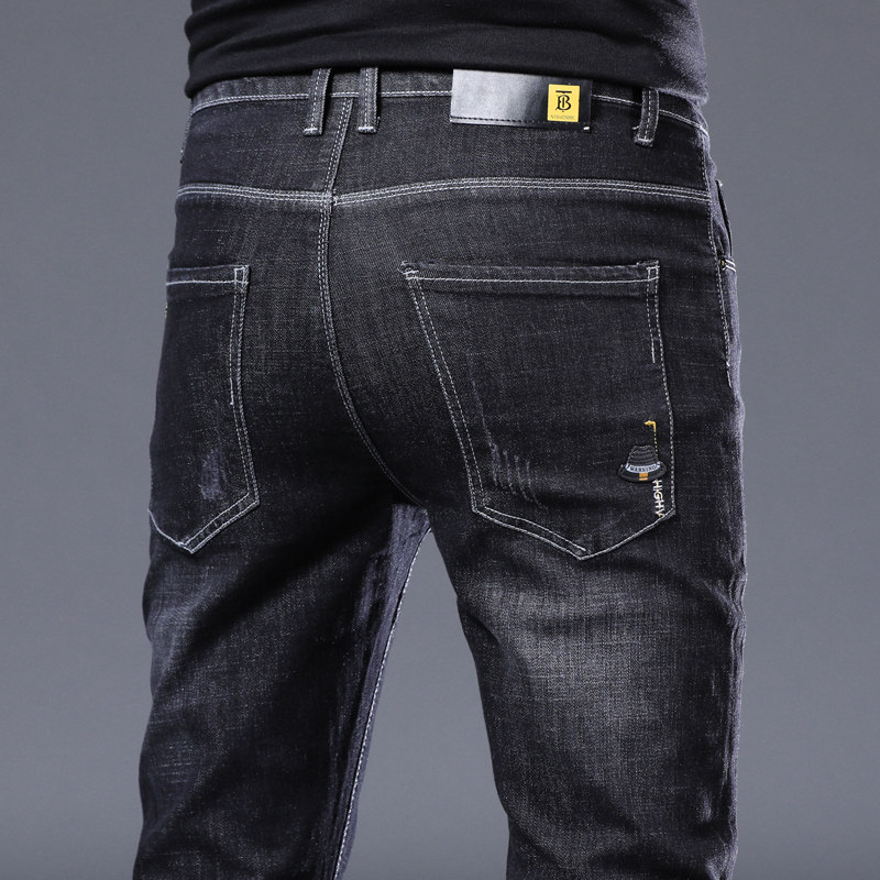 Summer thin men's jeans slim fit small feet Korean version trend all-match non-fading stretch straight casual pants