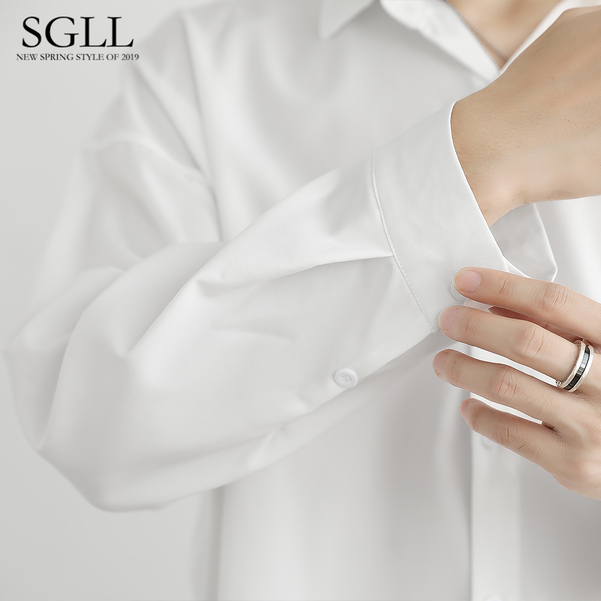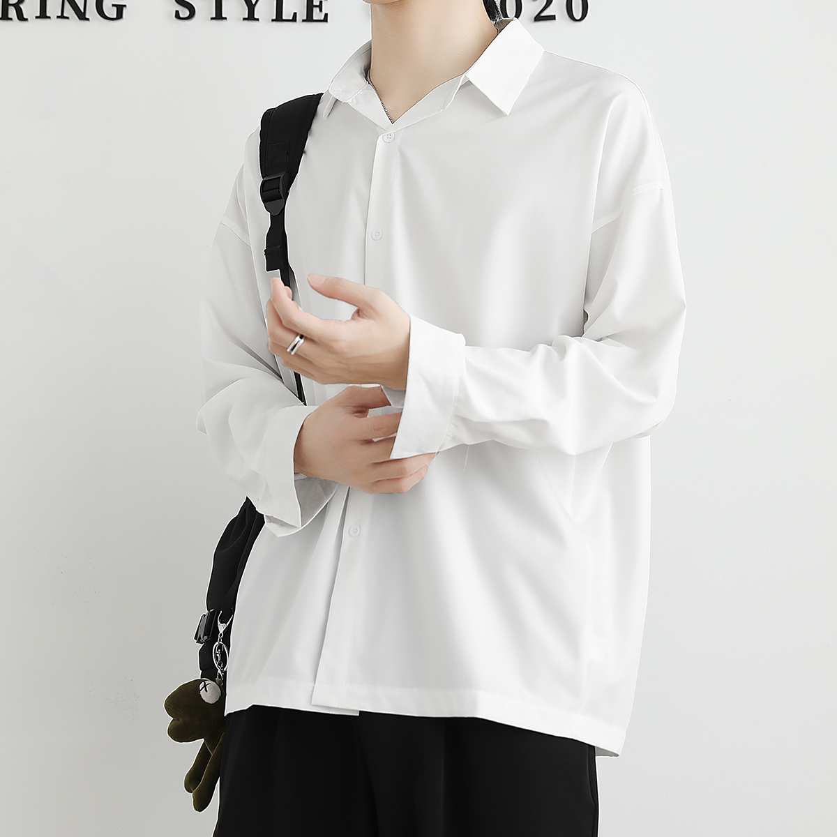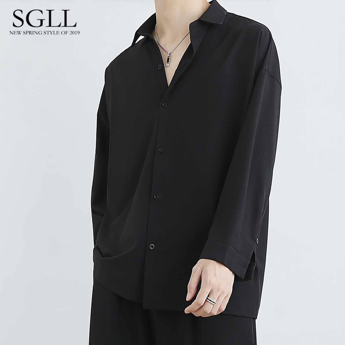 Black shirt men's long sleeves autumn Korean version trend leprosy handsome dk men's coat casual men's autumn white shirt