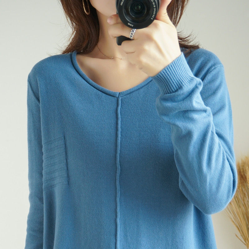 100% pure cotton sweater knitted bottoming shirt women's long-sleeved inner loose Korean style pullover sweater autumn and winter new outer wear