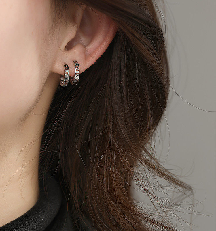Pair of Roman Numeral Earrings 925 Silver Pins