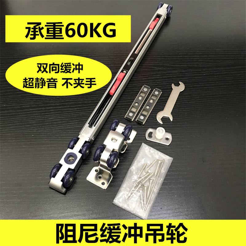 Sliding door bidirectional buffer hanging wheel mute wooden door wardrobe moving door fitting guide rail slide rail damper track pulley