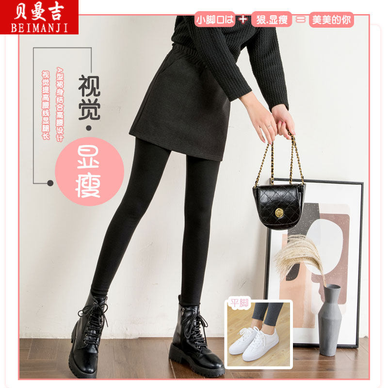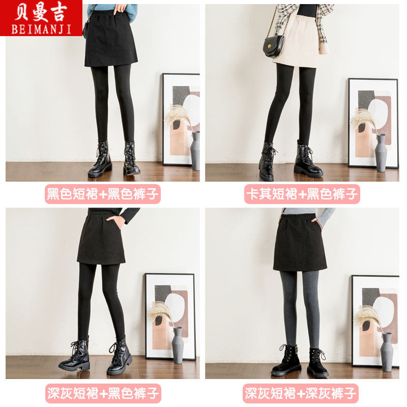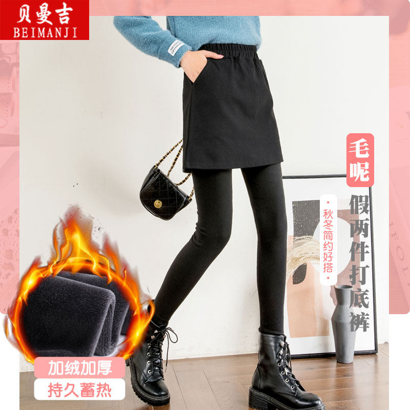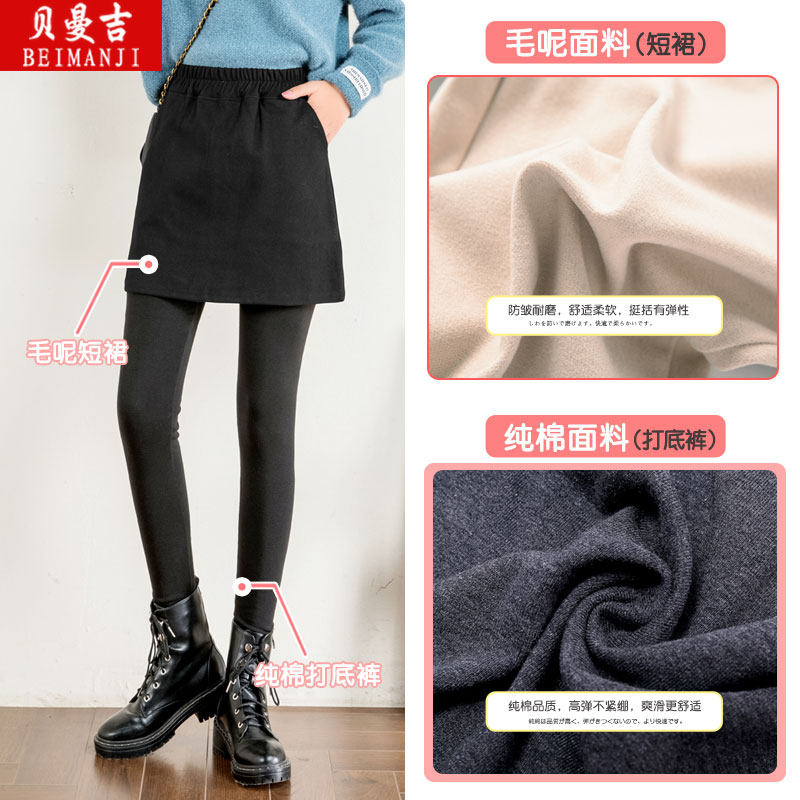 Fake two-piece inner pants women's woolen bag hips pure cotton one-piece skirt pants spring, autumn and winter outer wear high waist elastic plus velvet thickening