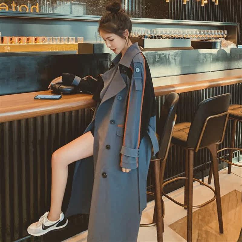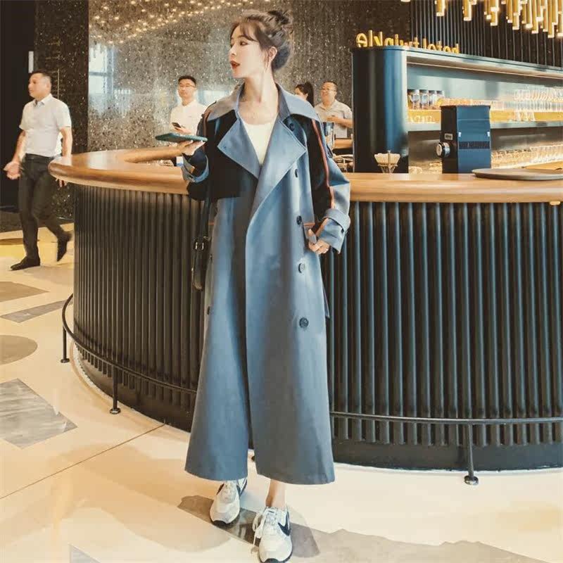 VOGCHAR Autumn French Hepburn Style Goddess Fan Windbreaker Jacket Women's Over-the-Knee Mid-length Korean Version Loose