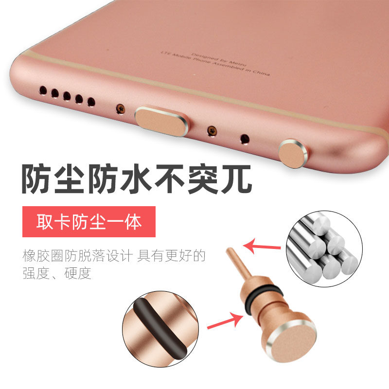 Red dust stopper 1 blue dust stopper 1 powder gold dust stopper 1 black dust stopper 1 silver dust stopper 1 gold dust stopper 1 red anti-dust plug 1 headphone dust stopper 1 containing box blue dust stopper 1