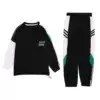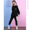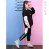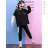 Girls spring and autumn long-sleeved knitted round neck two-piece set Middle and large children's Korean version of the foreign school black children's health pants thick cotton T suit