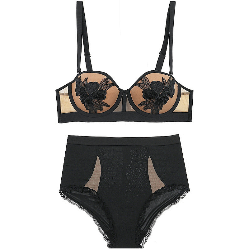 Method Embroidered Sexy Half Cup Bra Plastic bunches Underwear with steel ring coalescul Adjusted Underwear Suit