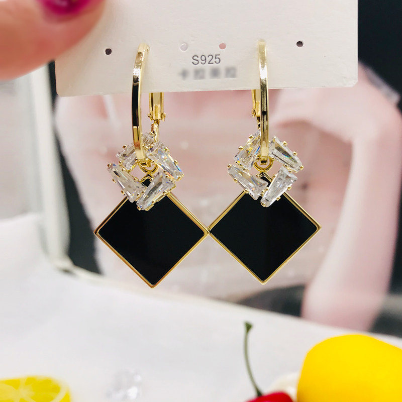 Geometric black long tassel earrings women's summer earrings 2021 new trendy quality Korean net red earrings women