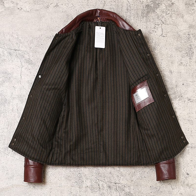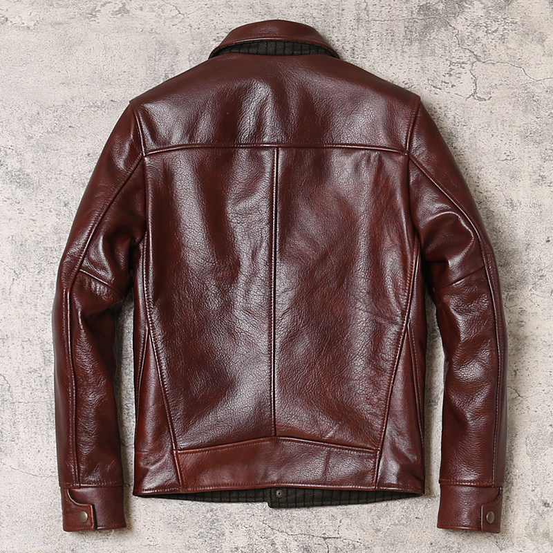 Fall Men's Leather Leather Clothing Wax Dyeing Head Layer Bull Leather Collar Single Row Buttoned short Casual Leather Jacket Sashimi Jacket
