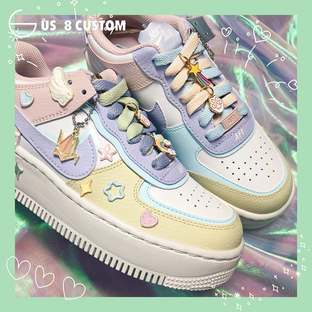 Adapted Nike Nike af1 Air Force One Macron White Blue Pink Original Ice Blue Pale Purple Mandarin Duck's Laces Accessories