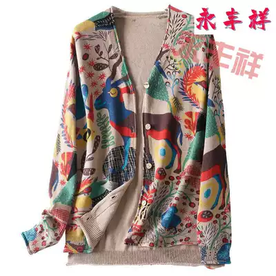 Color sweater cardigan coat Women's Spring and Autumn outside wear loose sweater Autumn New gentle style coat