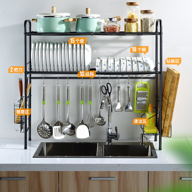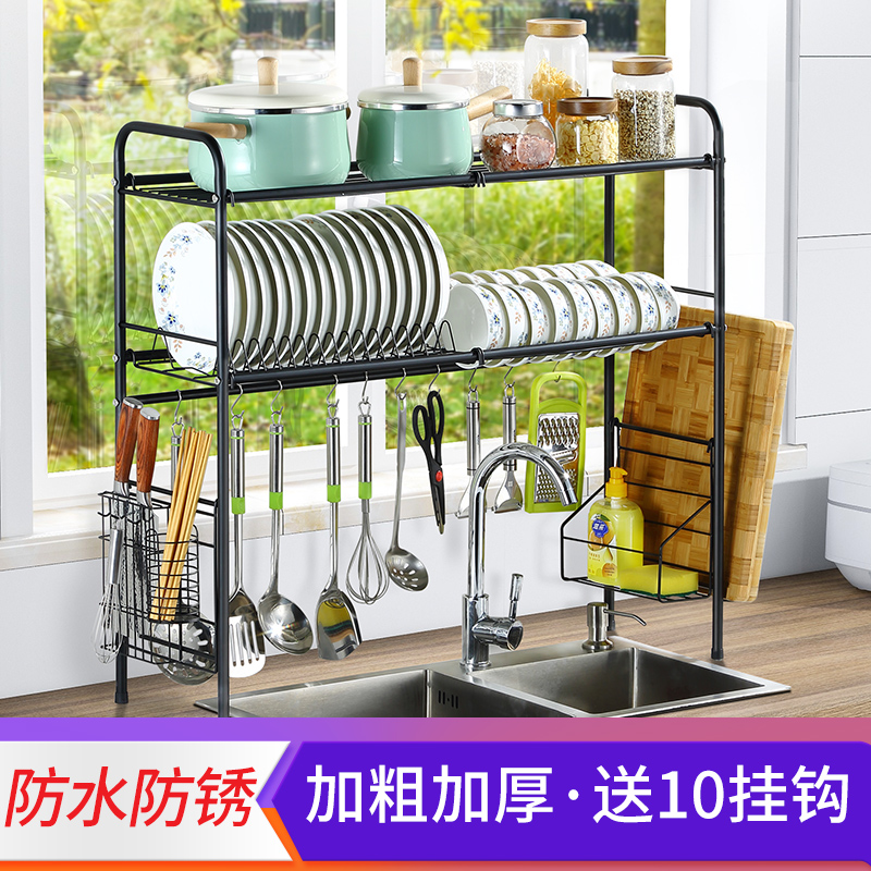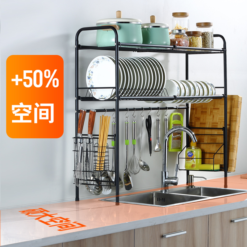 Stainless steel kitchen sink rack bowl rack bowl chopsticks drain rack dish rack sink storage layer rack home complete