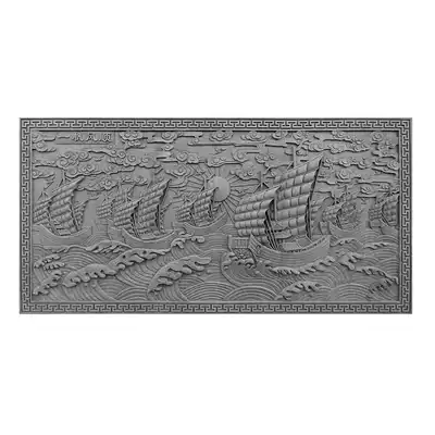 Antique brick carving Chinese-style ancient building shadow wall Courtyard outdoor photo wall Green brick relief background decoration Smooth sailing