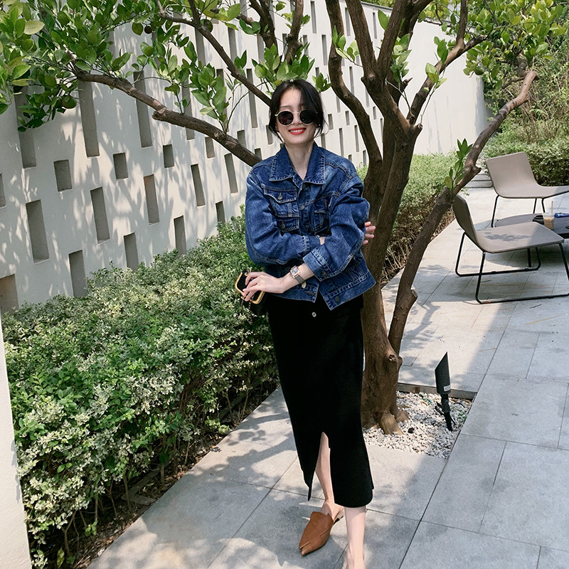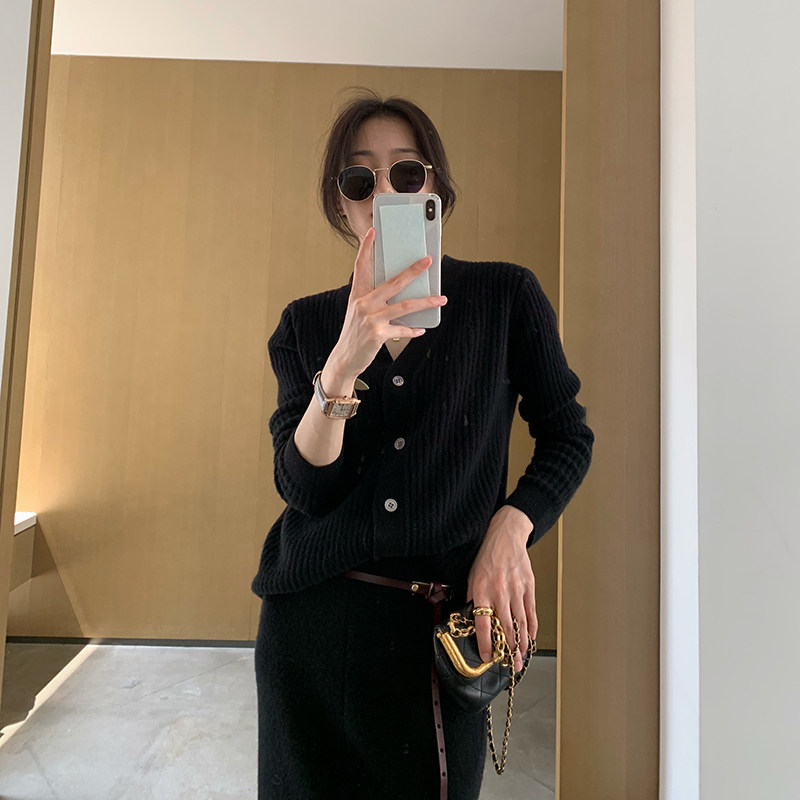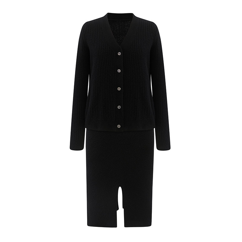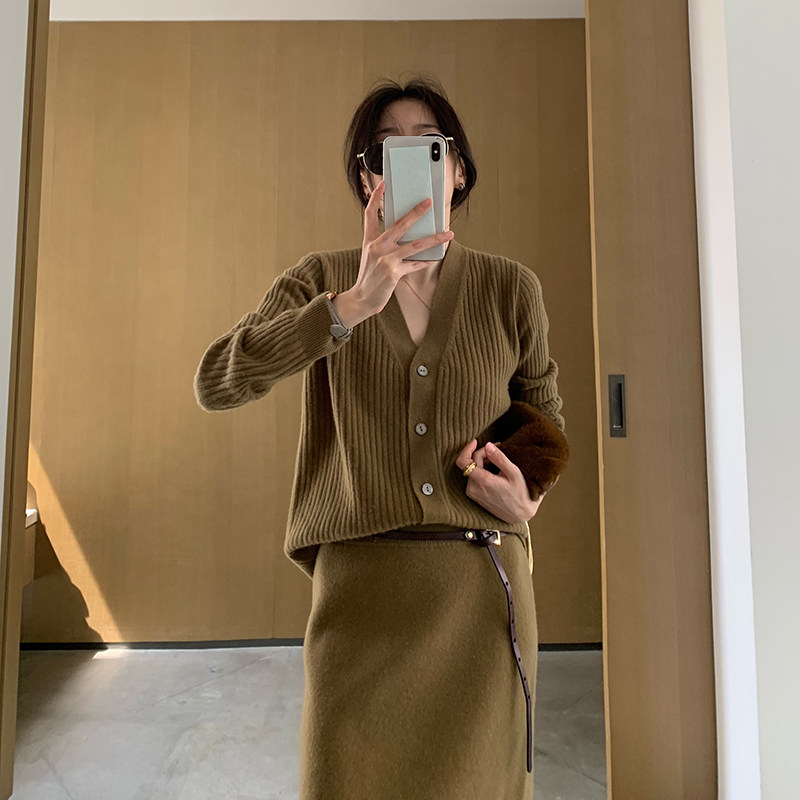 LICKYSENIOR SOFT WAXY PURE wool KNITTED SUIT WOMEN's AUTUMN CARDIGAN JACKET SPLIT SKIRT TWO-PIECE SET
