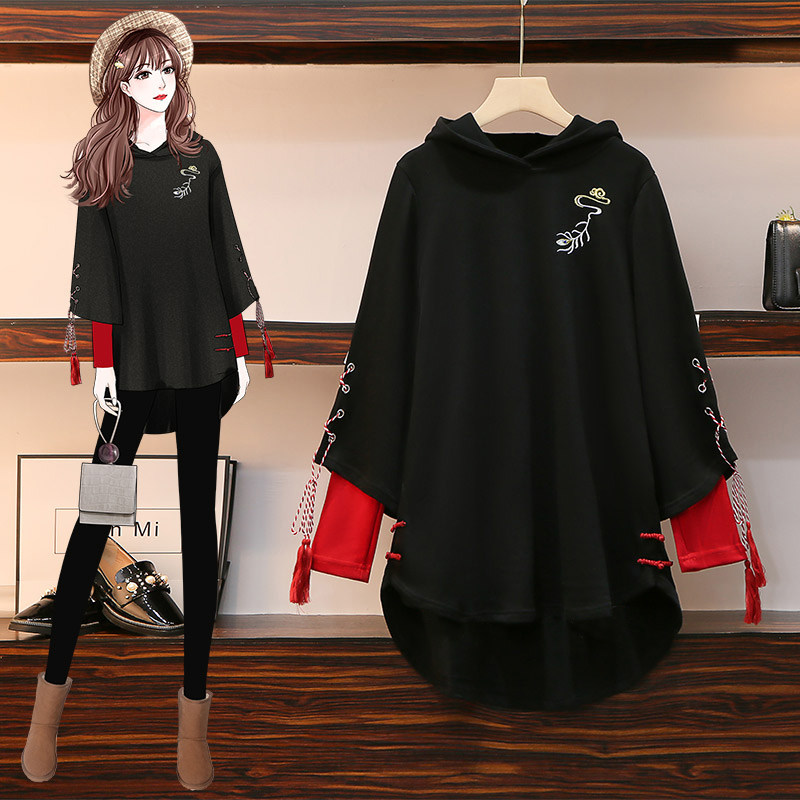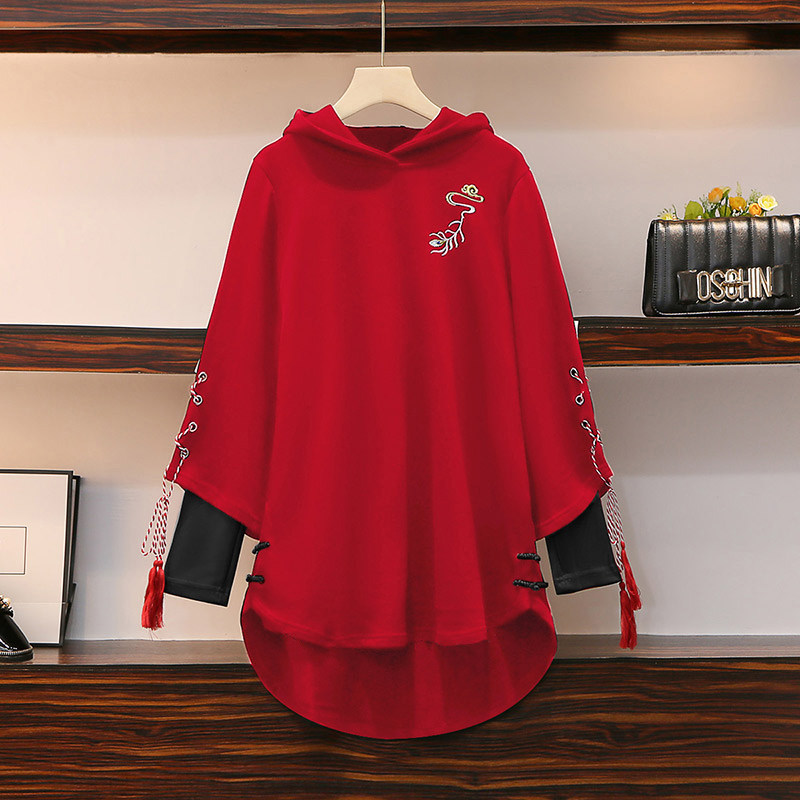 Large size women's clothing early autumn 2022 new fat sister Hanfu cheongsam improved sweater reduced age and thin printing top