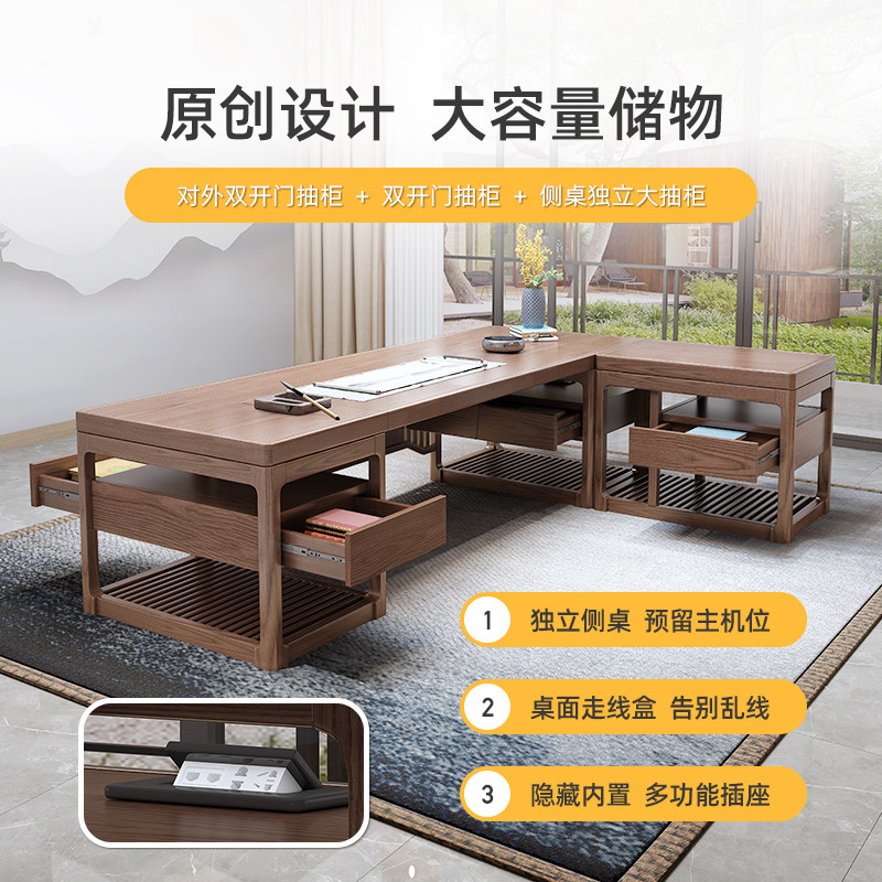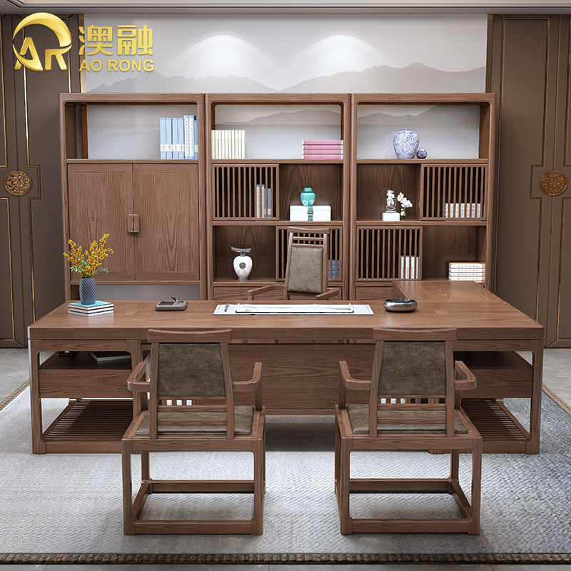New Chinese style desk and chair combination solid wood boss desk simple modern large class desk president office computer fashion