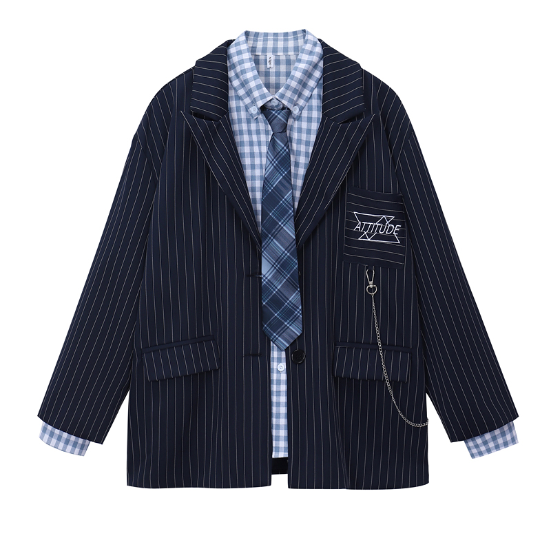 SHIYIYUE November suit suit female 2022 early autumn Korean style plaid shirt suit jacket two-piece set - Taobao