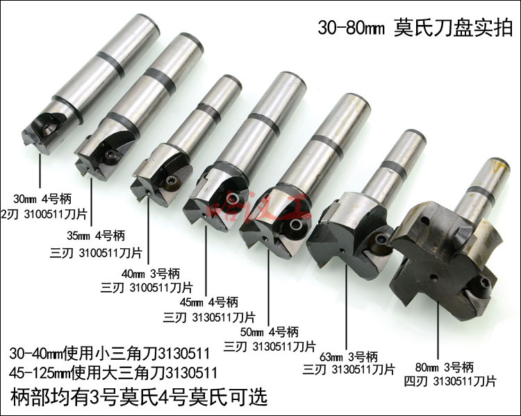 90 degree straight shank Morse taper shank carbide indexable milling cutter disc 30-100mm triangular blade milling cutter