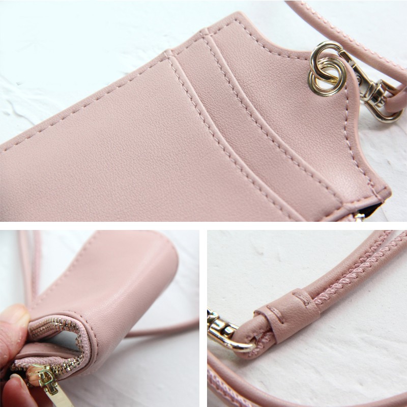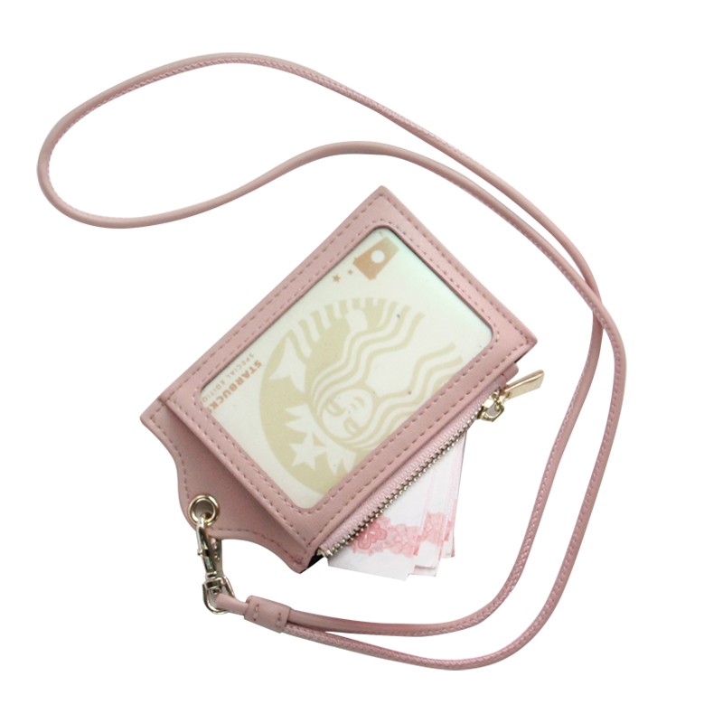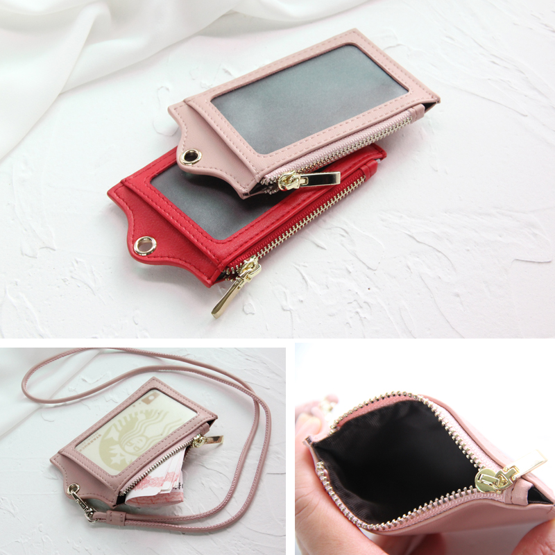 Real leather work certificate sleeve Campus bus subway card hanging rope hanging neck ultra-thin piece of card bag a piece of student female