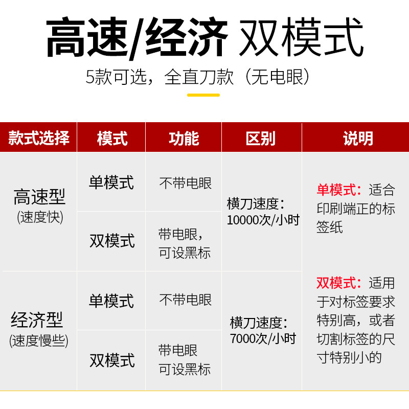 Economy type single mode Economy Type Double mode High speed single mode High speed type Double mode Full straight knife