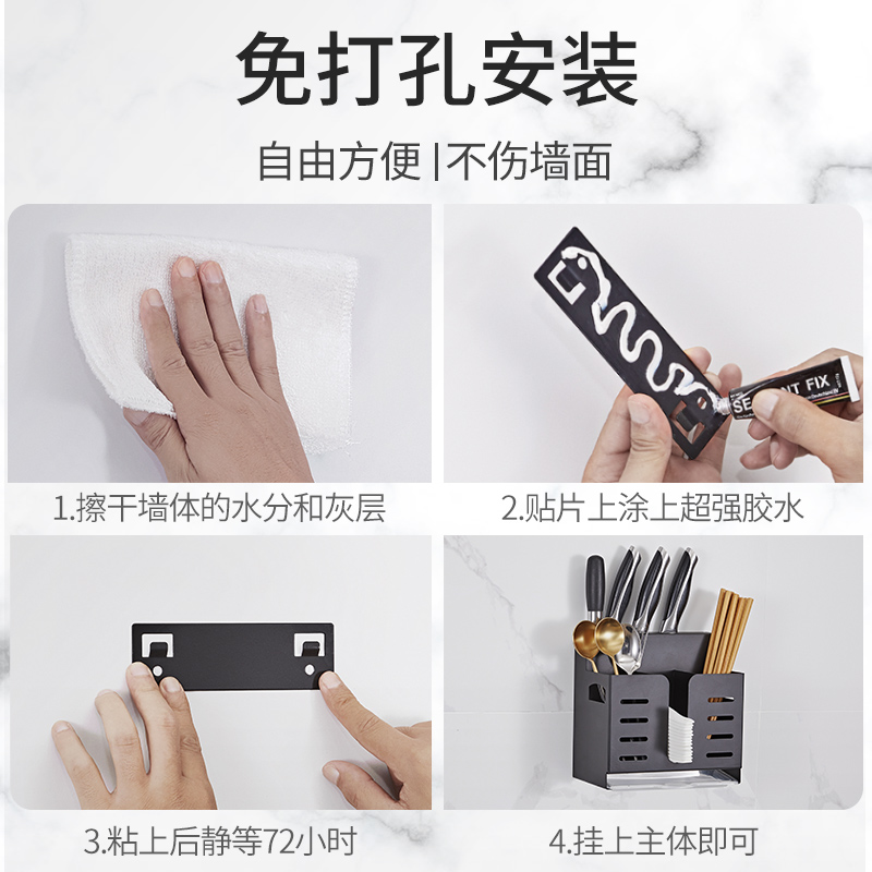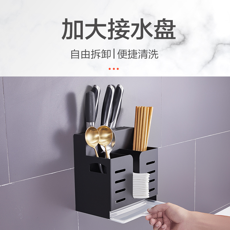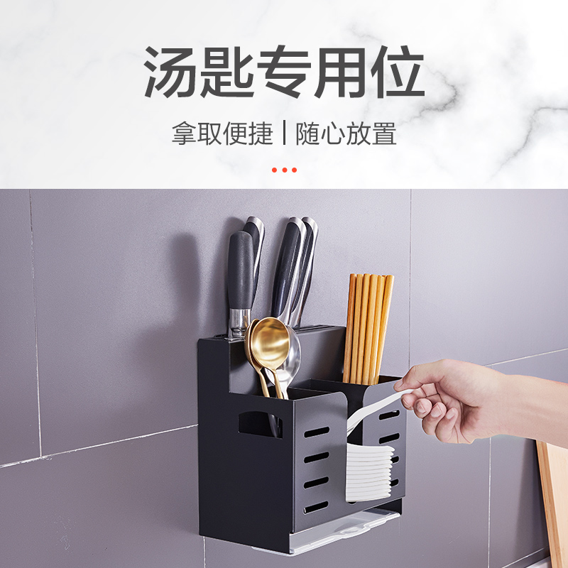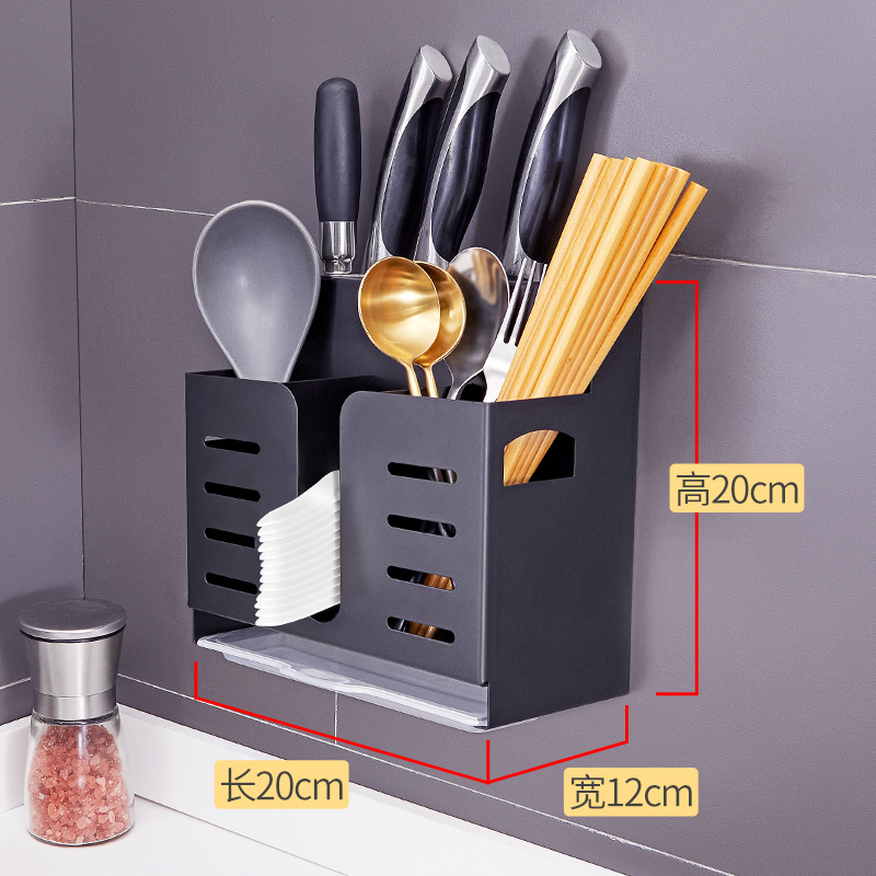 Tool holder wall-mounted free of punching stainless steel kitchen chopsticks multifunctional shelve knife chopstick cylinder chopstick cage cutter containing