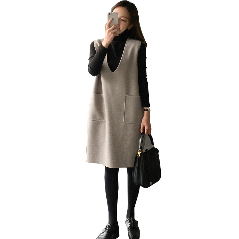 Maternity Autumn/Winter Set Korean version of wool top mid-length vest vest skirt Two-piece hip mom dress