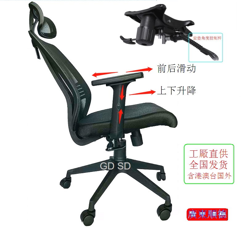 Brilliant black linkage armrest Aluminum alloy feet are available in color
